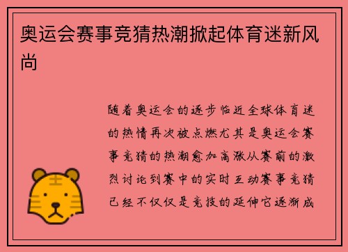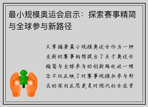 随着奥运会的举办,体育设施的建设和创新不断引起全球关注,尤其是奥运会排名前十城市,这些城市的体育设施新发展趋势显得尤为突出。本文将从多个方面分析这些城市的体育设施新发展趋势,涵盖设施的现代化、可持续性、智能化以及社会效益等层面。我们将探讨如何在未来提高奥运会场馆的利用率,并结合城市发展需求,推动城市综合发展。本文力求展示奥运会城市如何通过创新和改进,提升体育基础设施的功能与影响力,进而促进全球体育...